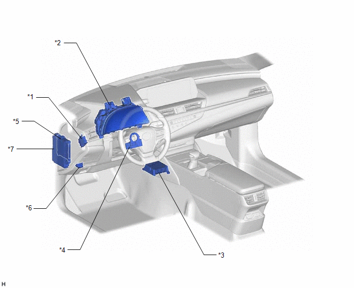 | *3 | AIRBAG ECU ASSEMBLY - YAW RATE AND ACCELERATION SENSOR | *4 | STEERING SENSOR |