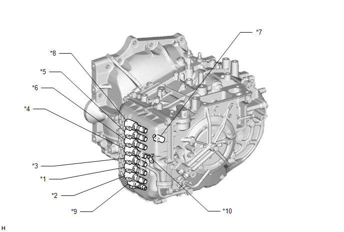| *9 | SOLENOID (SLT) VALVE | *10 | TRANSMISSION WIRE - ATF TEMPERATURE SENSOR |