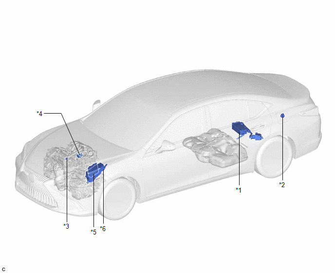 | *5 | ECM | *6 | ENGINE ROOM RELAY BLOCK AND JUNCTION BLOCK ASSEMBLY - EFI-MAIN NO. 1 RELAY - EFI-MAIN NO. 1 FUSE - EFI NO. 1 FUSE |