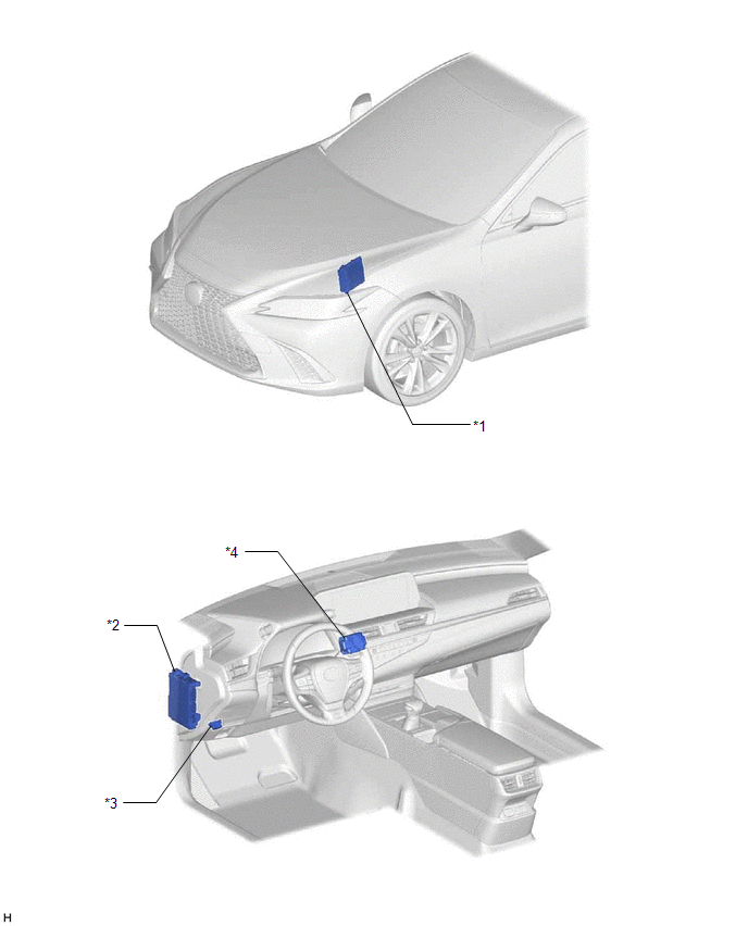 | *1 | FRONT NO. 1 SPEAKER ASSEMBLY LH | *2 | FRONT NO. 1 SPEAKER ASSEMBLY RH |