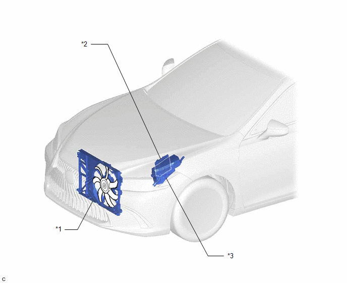 | *1 | FAN WITH MOTOR ASSEMBLY - COOLING FAN MOTOR - COOLING FAN ECU | *2 | ECM |