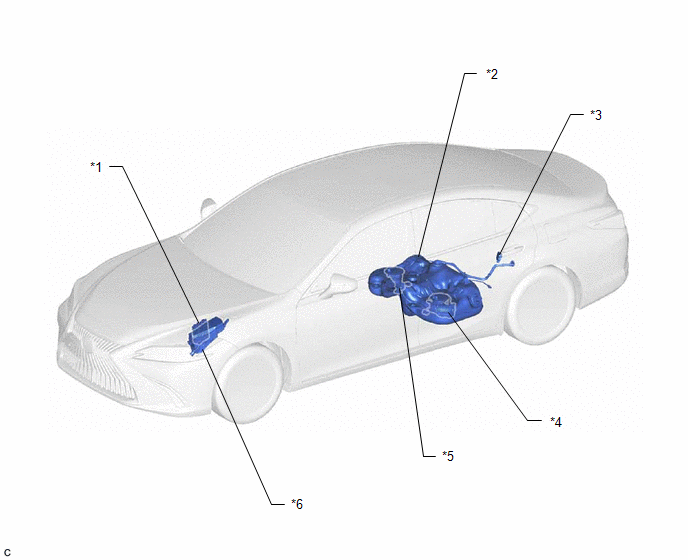 | *5 | FUEL TANK VENT TUBE ASSEMBLY - NO. 2 FUEL SENDER GAUGE ASSEMBLY | *6 | NO. 1 ENGINE ROOM RELAY BLOCK ASSEMBLY AND NO. 1 ENGINE ROOM JUNCTION BLOCK ASSEMBLY - EFI-MAIN NO. 1 RELAY - EFI-MAIN NO. 2 RELAY - IG2 NO. 1 RELAY - EFI-MAIN NO. 2 FUSE - INJ FUSE |