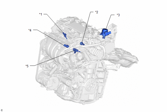 | *1 | PORT FUEL INJECTOR ASSEMBLY | *2 | NO. 2 FUEL PRESSURE SENSOR (for Low Pressure) |