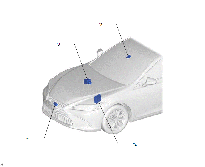 | *1 | MILLIMETER WAVE RADAR SENSOR ASSEMBLY | *2 | FORWARD RECOGNITION CAMERA |
