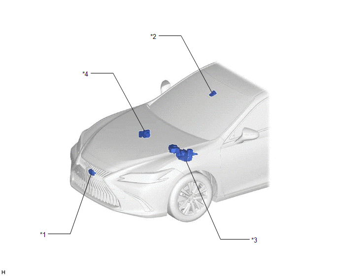 | *1 | MILLIMETER WAVE RADAR SENSOR ASSEMBLY | *2 | FORWARD RECOGNITION CAMERA |