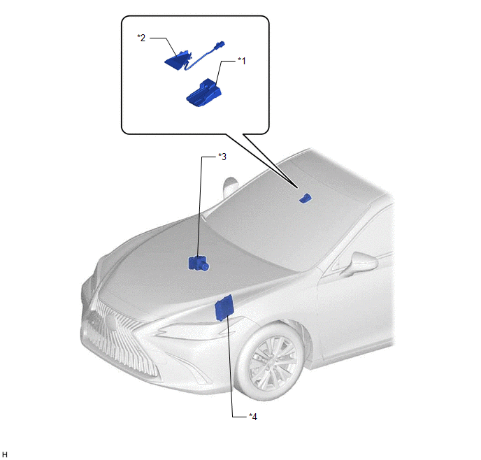 | *1 | FORWARD RECOGNITION CAMERA | *2 | FORWARD RECOGNITION WITH HEATER HOOD SUB-ASSEMBLY |