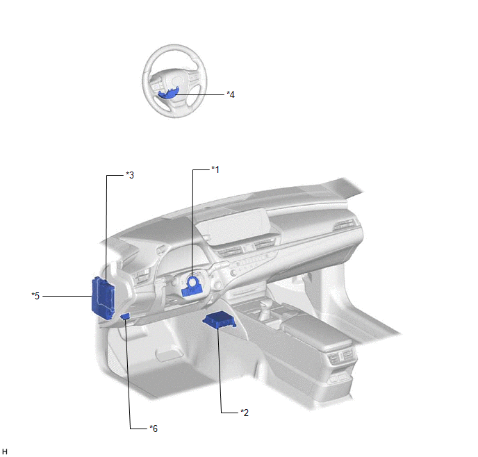 | *1 | STEERING SENSOR | *2 | AIRBAG ECU ASSEMBLY - YAW RATE SENSOR |
