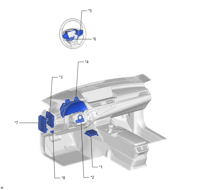 | *7 | INSTRUMENT PANEL JUNCTION BLOCK ASSEMBLY - ECU-IG1 NO. 3 FUSE | *8 | DLC3 |