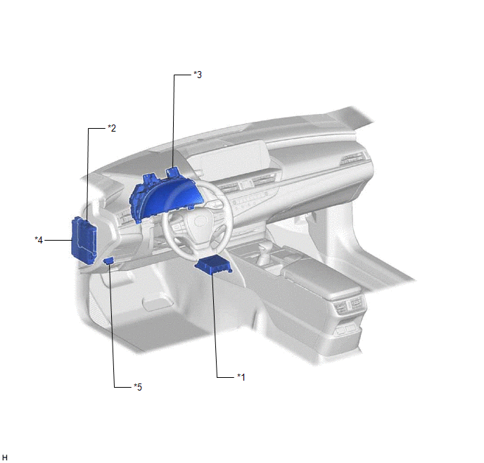| *3 | COMBINATION METER ASSEMBLY | *4 | INSTRUMENT PANEL JUNCTION BLOCK ASSEMBLY - ECU-IG1 NO. 3 FUSE |
