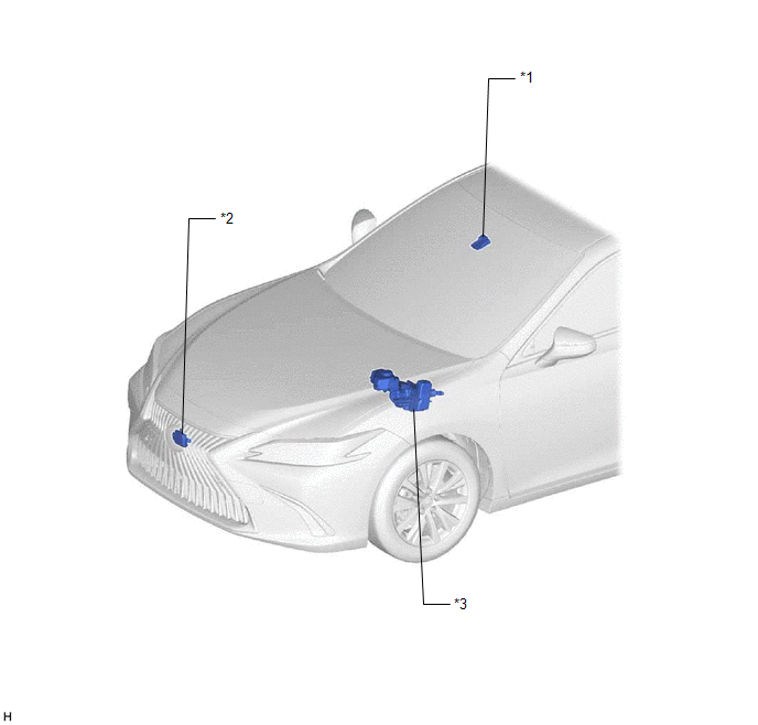 | *1 | FORWARD RECOGNITION CAMERA | *2 | MILLIMETER WAVE RADAR SENSOR ASSEMBLY |
