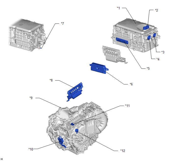 | *9 | HYBRID VEHICLE TRANSAXLE ASSEMBLY | *10 | SHIFT LEVER POSITION SENSOR |