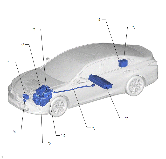 | *9 | AIRBAG ECU ASSEMBLY | *10 | HYBRID VEHICLE CONTROL ECU |