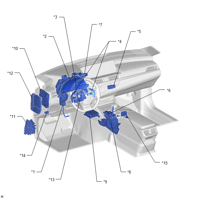 | *9 | AIRBAG ECU ASSEMBLY | *10 | HYBRID VEHICLE CONTROL ECU |
