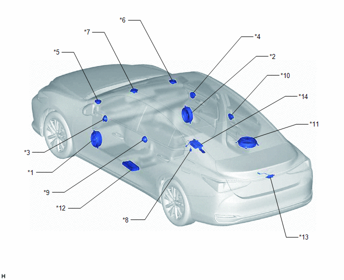 | *9 | REAR SPEAKER ASSEMBLY LH | *10 | REAR SPEAKER ASSEMBLY RH |