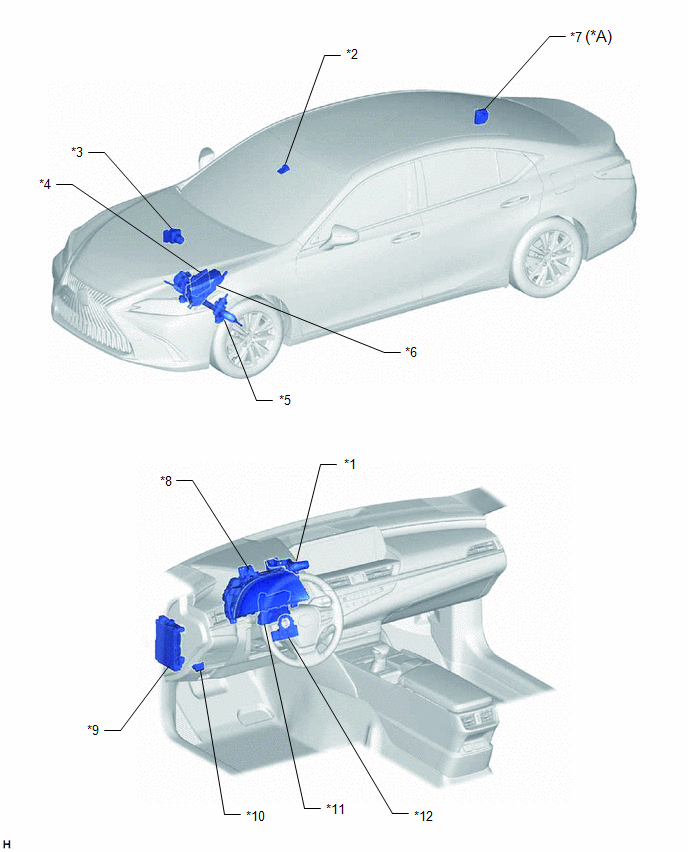 | *11 | AIR CONDITIONING AMPLIFIER ASSEMBLY | *12 | STEERING SENSOR |