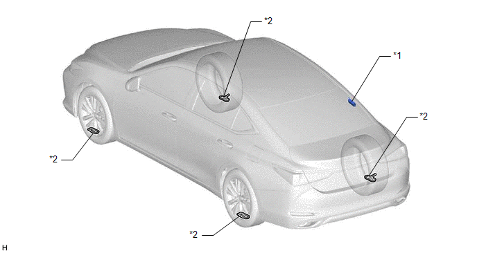 | *1 | TIRE PRESSURE WARNING ECU AND RECEIVER | *2 | TIRE PRESSURE WARNING VALVE AND TRANSMITTER |