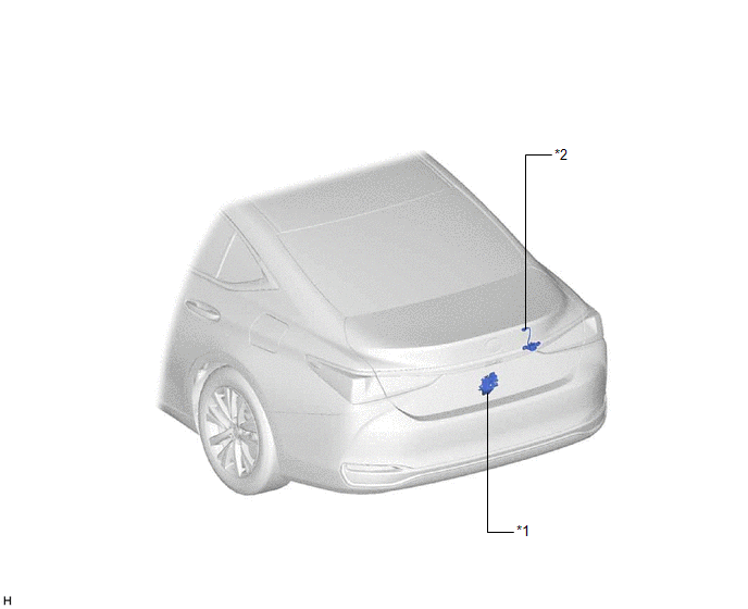 | *1 | TRUNK AND FUEL SWITCH ASSEMBLY | *2 | LUGGAGE DOOR OPENING CANCEL SWITCH ASSEMBLY |