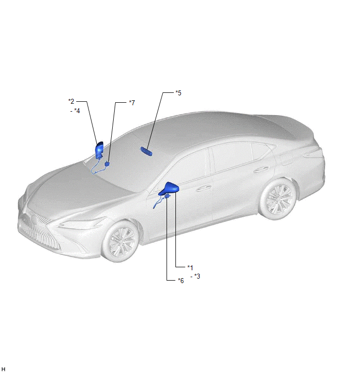 | *5 | INNER REAR VIEW MIRROR ASSEMBLY | *6 | OUTER MIRROR CONTROL ECU ASSEMBLY (DRIVER DOOR) |