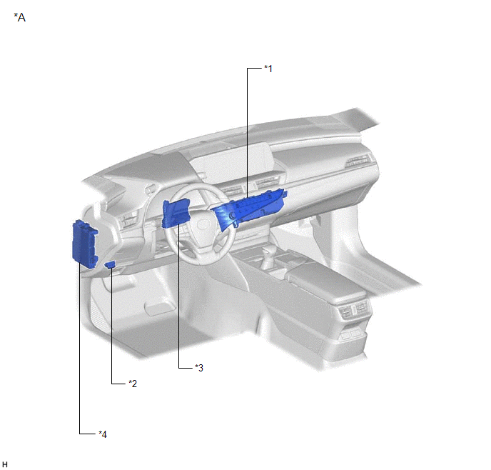 | *3 | AIR CONDITIONING AMPLIFIER ASSEMBLY | *4 | INSTRUMENT PANEL JUNCTION BLOCK ASSEMBLY - ECU-ACC FUSE - ECU-IG1 NO. 3 FUSE |