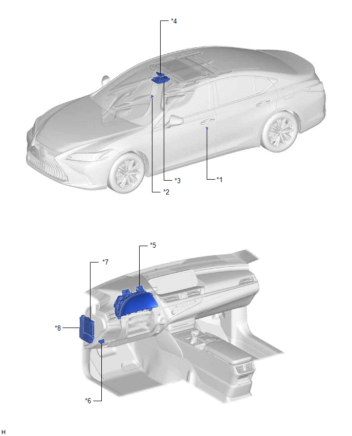 | *7 | MAIN BODY ECU (MULTIPLEX NETWORK BODY ECU) | *8 | INSTRUMENT PANEL JUNCTION BLOCK ASSEMBLY - S/ROOF FUSE |