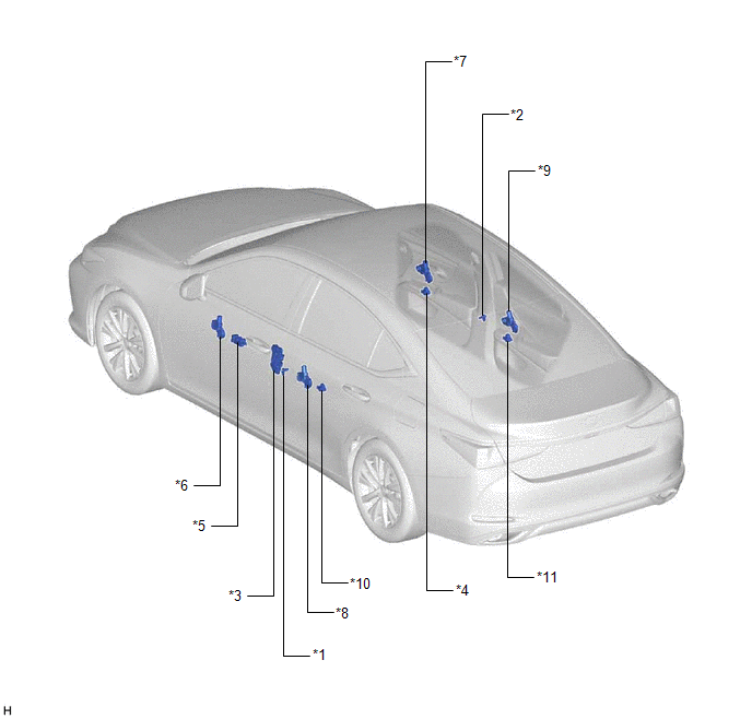 | *9 | POWER WINDOW REGULATOR MOTOR ASSEMBLY (for Rear RH Door) | *10 | REAR POWER WINDOW REGULATOR SWITCH ASSEMBLY (for LH Door) |