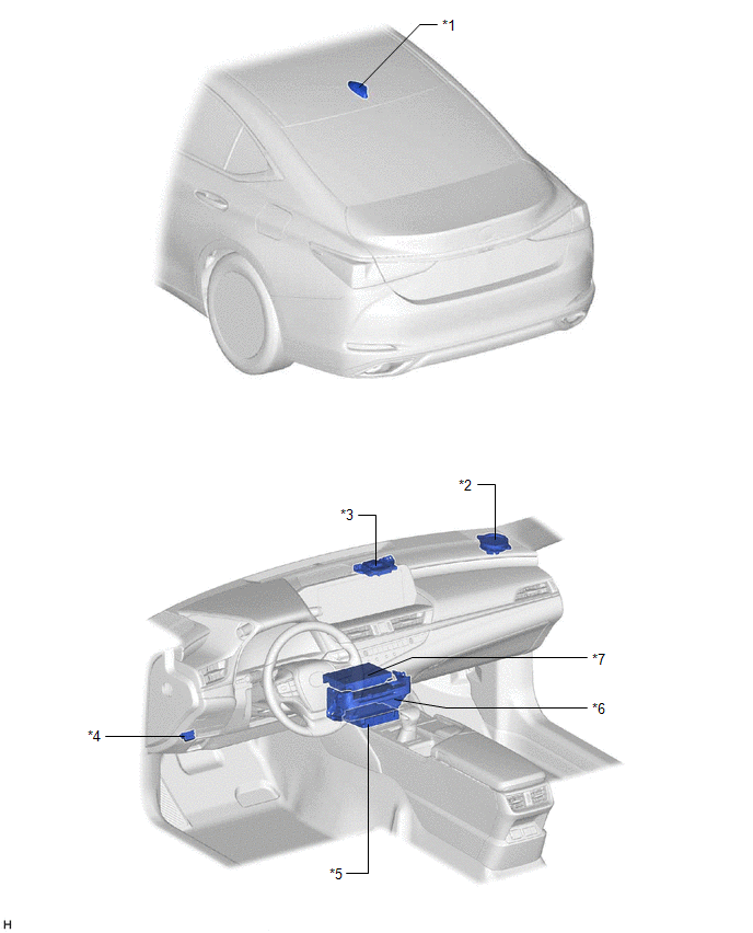| *1 | ROOF ANTENNA ASSEMBLY - GPS - Telephone Main | *2 | FRONT NO. 2 SPEAKER ASSEMBLY RH |