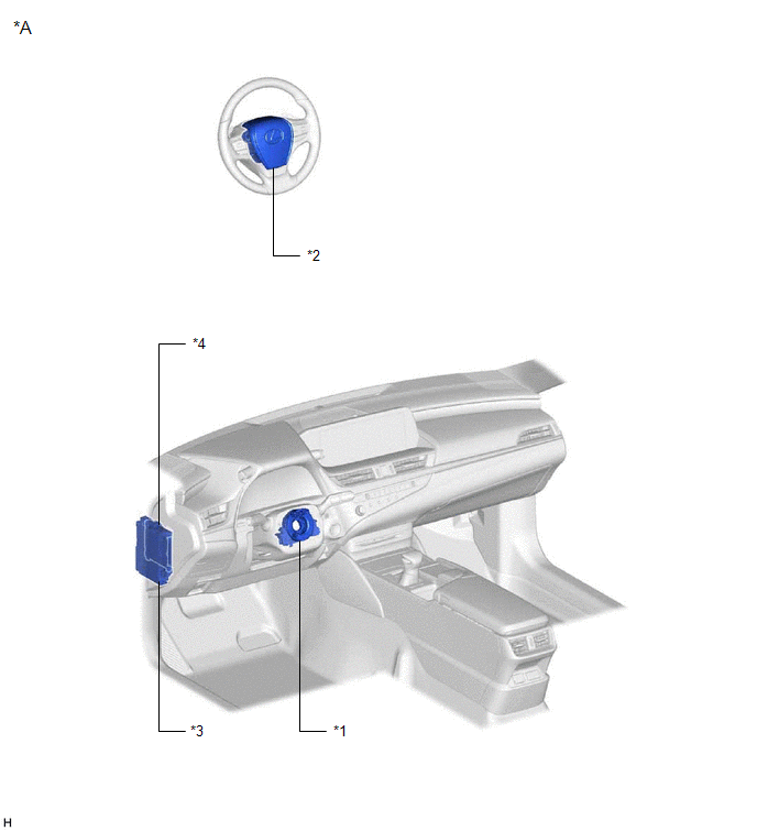 | *1 | SPIRAL CABLE SUB-ASSEMBLY | *2 | HORN BUTTON ASSEMBLY |