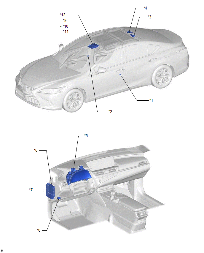 | *3 | ROOF SUNSHADE ECU (SLIDING ROOF DRIVE GEAR ASSEMBLY) | *4 | SLIDING ROOF ECU (SLIDING ROOF DRIVE GEAR ASSEMBLY) |