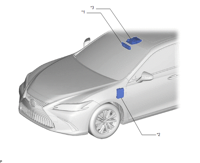 | *1 | INNER REAR VIEW MIRROR ASSEMBLY - GARAGE DOOR OPENER | *2 | INSTRUMENT PANEL JUNCTION BLOCK ASSEMBLY - ECU-B NO. 2 FUSE - ECU-IG1 NO. 3 FUSE |