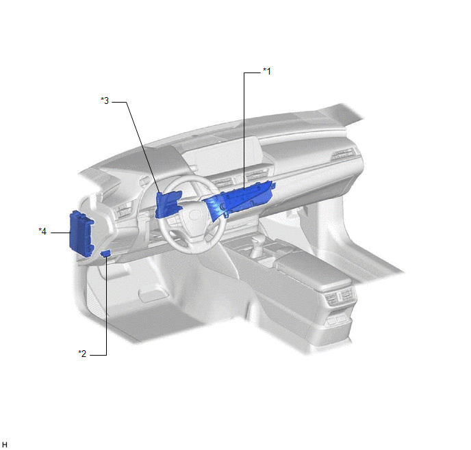 | *3 | AIR CONDITIONING AMPLIFIER ASSEMBLY | *4 | INSTRUMENT PANEL JUNCTION BLOCK ASSEMBLY - ECU-IG1 NO. 3 FUSE |