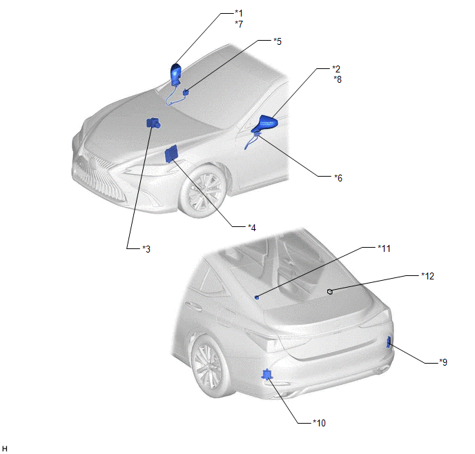 | *9 | BLIND SPOT MONITOR SENSOR RH (MASTER) | *10 | BLIND SPOT MONITOR SENSOR LH (SLAVE) |