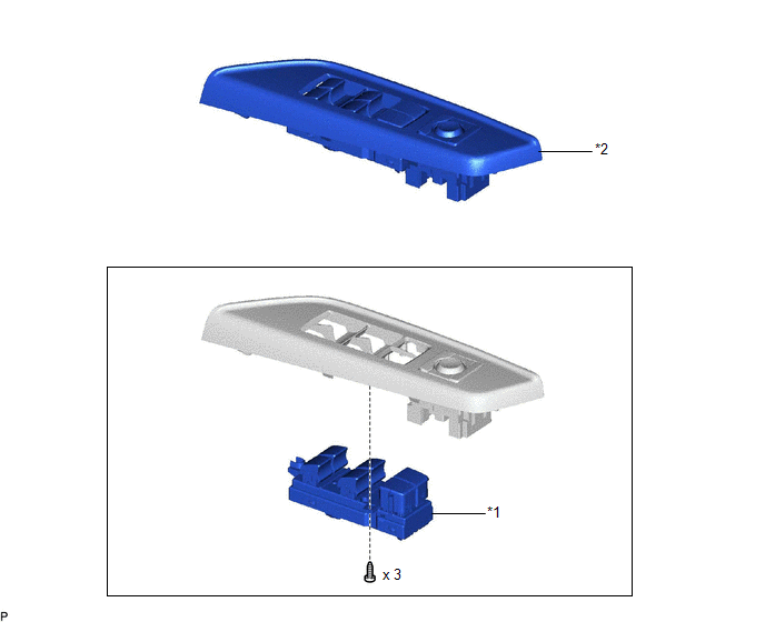 | *1 | MULTIPLEX NETWORK MASTER SWITCH ASSEMBLY | *2 | MULTIPLEX NETWORK MASTER SWITCH ASSEMBLY WITH FRONT DOOR UPPER ARMREST BASE PANEL |