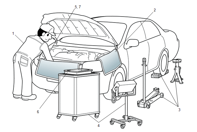 Prepare a grille cover, fender cover, seat cover and floor mat before starting work. |