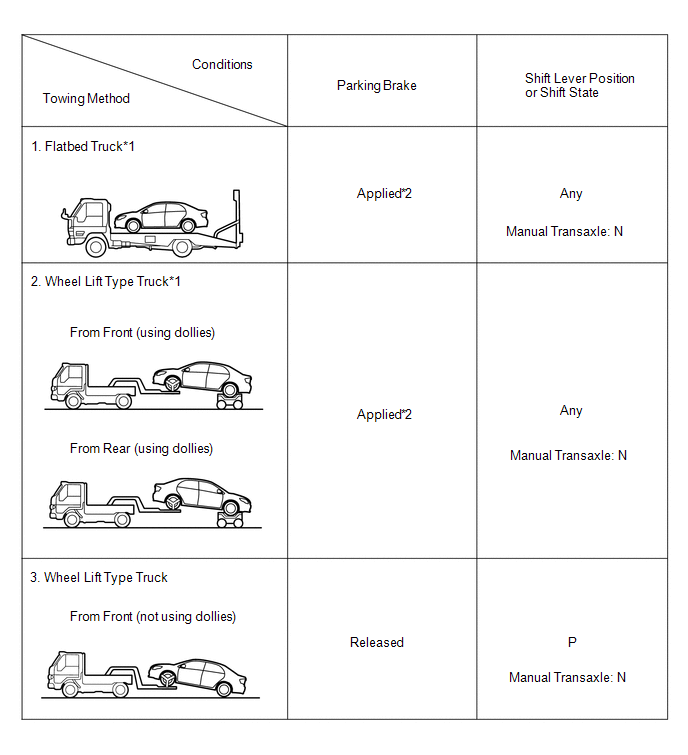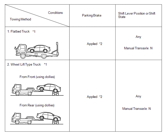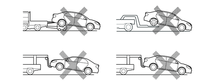 w/ Electronic Shift Lever System:(d) The towing methods shown below are dangerous and can damage the vehicle, so do not use them.