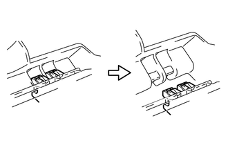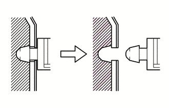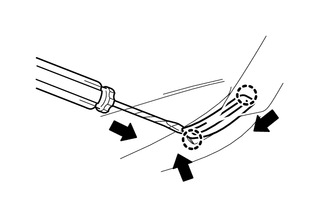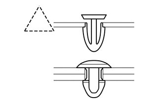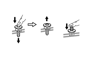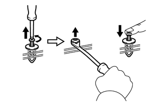 Remove the clips by prying out the pin using a screwdriver with its tip wrapped with protective tape and then prying out the shell. |