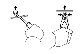 (d) For a spring type clamp, it may be necessary to spread the tabs slightly after installation by pushing them in the direction of the arrows as shown in the illustration.