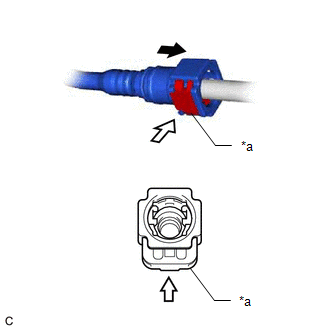 (4) While holding the retainer at the positions shown in the illustration, pull up the retainer to disengage the lock claws.