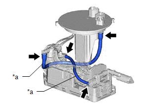 Do not disconnect the tube shown in the illustration when disassembling the fuel suction tube with pump and gauge assembly. Doing so will cause reassembly of the fuel suction tube with pump and gauge assembly to be impossible as the tube is pressed into the fuel suction plate sub-assembly.