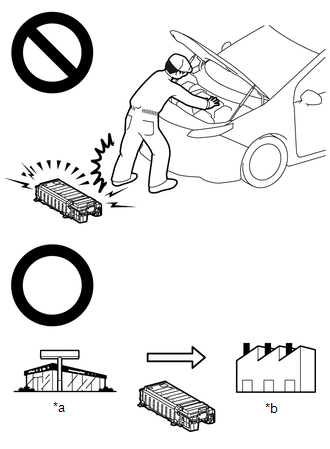 (a) When disposing of HV batteries and hybrid vehicle supply stack sub-assemblies, make sure to return them through an authorized collection agent who is capable of handling them safely. If they are returned via the manufacturer specified route, they will be returned properly and in a safe manner by an authorized collection agent.