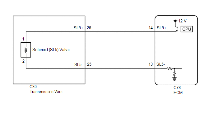 | Related DTCs | P281E: Solenoid (SL5) valve/Range check (High current) |