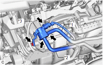 | *1 | PURGE VALVE (PURGE VSV) | *2 | NO. 1 FUEL VAPOR FEED HOSE |