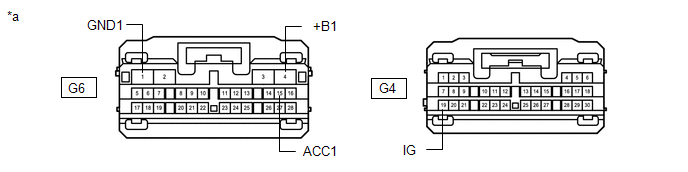 | G4-19 (IG) - Body ground | Power switch on (IG) | 11 to 14 V |