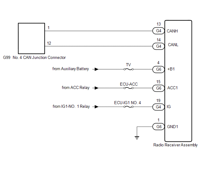 | 4. | CHECK FOR OPEN IN CAN BUS LINES (RADIO RECEIVER ASSEMBLY BRANCH LINE) |