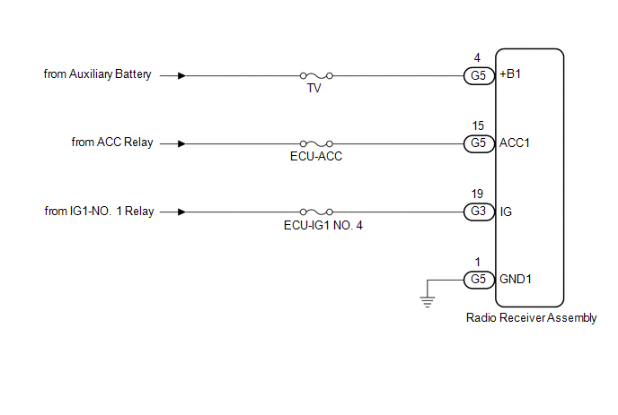| 1. | CHECK HARNESS AND CONNECTOR (RADIO RECEIVER ASSEMBLY POWER SOURCE) |