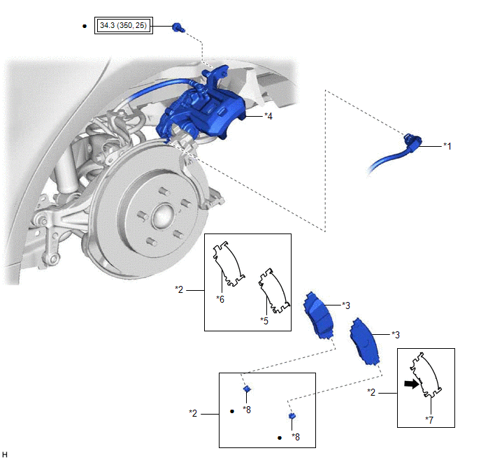 | *1 | NO. 2 PARKING BRAKE WIRE ASSEMBLY | *2 | REAR DISC BRAKE ANTI-SQUEAL SHIM KIT |