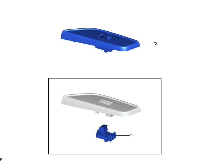 | *1 | REAR POWER WINDOW REGULATOR SWITCH ASSEMBLY | *2 | REAR POWER WINDOW REGULATOR SWITCH ASSEMBLY WITH REAR DOOR UPPER ARMREST BASE PANEL |