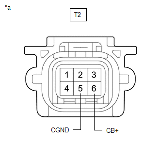 | T2-6 (CB+) - Body ground | Power switch on (ACC) | 5.5 to 7.05 V |