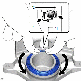 | (b) Install the piston seal to the front disc brake cylinder. NOTICE: Securely install the piston seal into the groove of the front disc brake cylinder. |