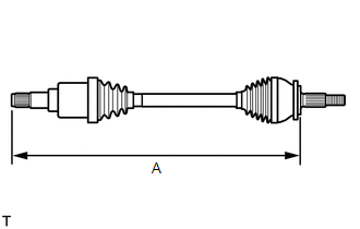 | (b) Check whether the drive shaft dimension (A) is within specification. Length (A): 749.1 to 759.1 cm (2.46 to 2.49 ft.) NOTICE: Keep the drive shaft assembly level during inspection. If the boots are stretched or contracted, correct them. |