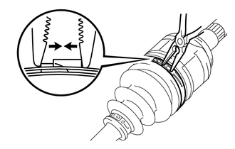 | (1) Using needle-nose pliers, install the rear No. 2 drive shaft inboard joint boot clamp LH as shown in the illustration. NOTICE: Be careful not to damage the inboard joint boot. |